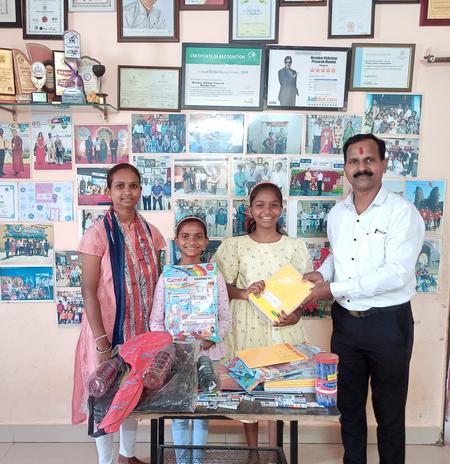 माझ्या संस्थेत काम करणारे विद्या ताई यांचे ते आई दादा आहेत त्यांनी सुद्धा मला विनंती केली होती या दोघांच्या विनंतीला मान देऊन आज त्यांना संस्थेत बोलावून प्रत्यक्ष हातात शैक्षणिक साहित्य दिले आहे. आज त्यांच्या हातात साहित्य देताना त्यांच्या चेहऱ्यावर आनंद आणि समाधान दिसून आले होते.